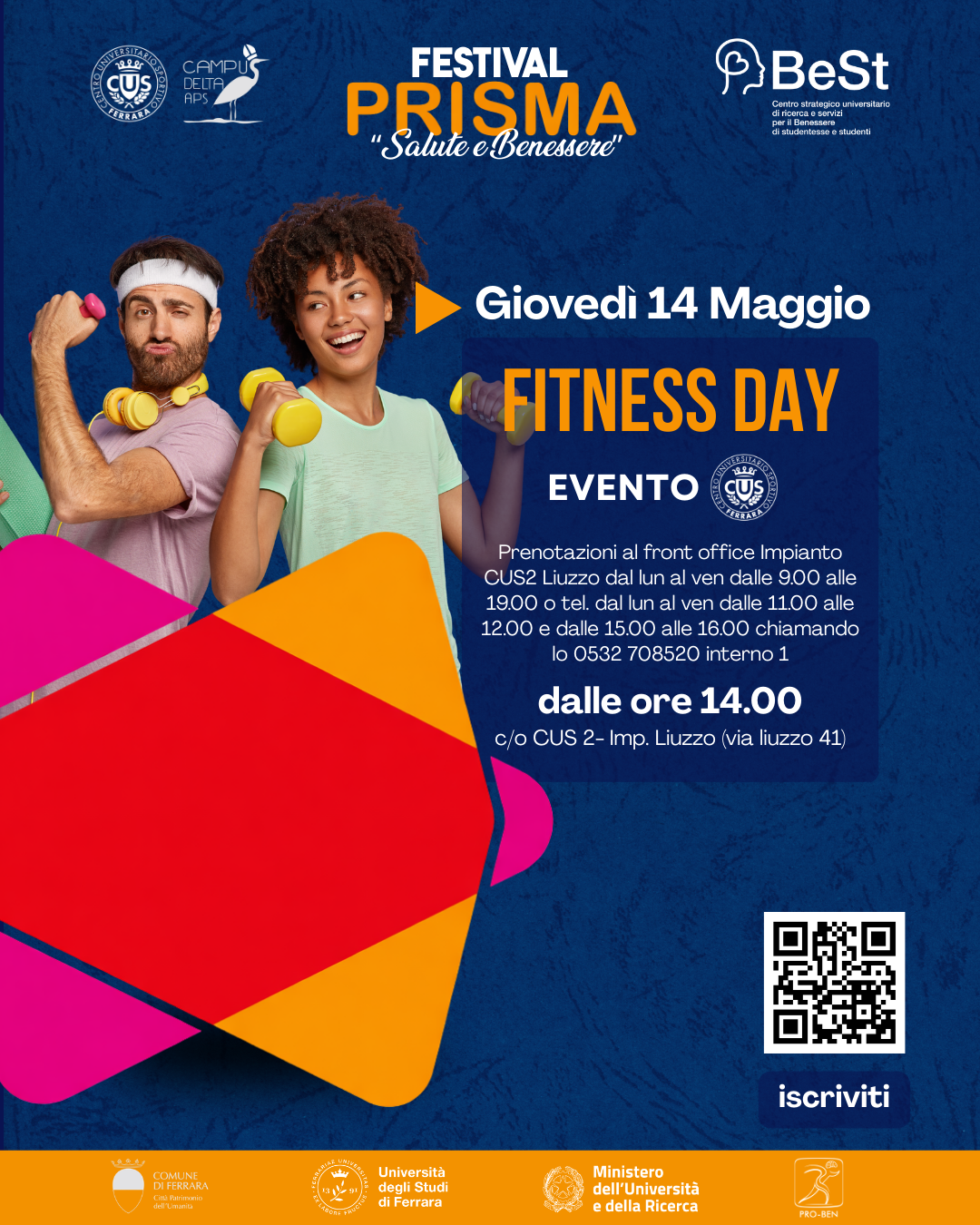 Nell'ambito del Progetto PRISMA, del Festival PRISMA "Salute e benessere" e degli open days CUS Ferrara si propongono attività gratuite di fitness.